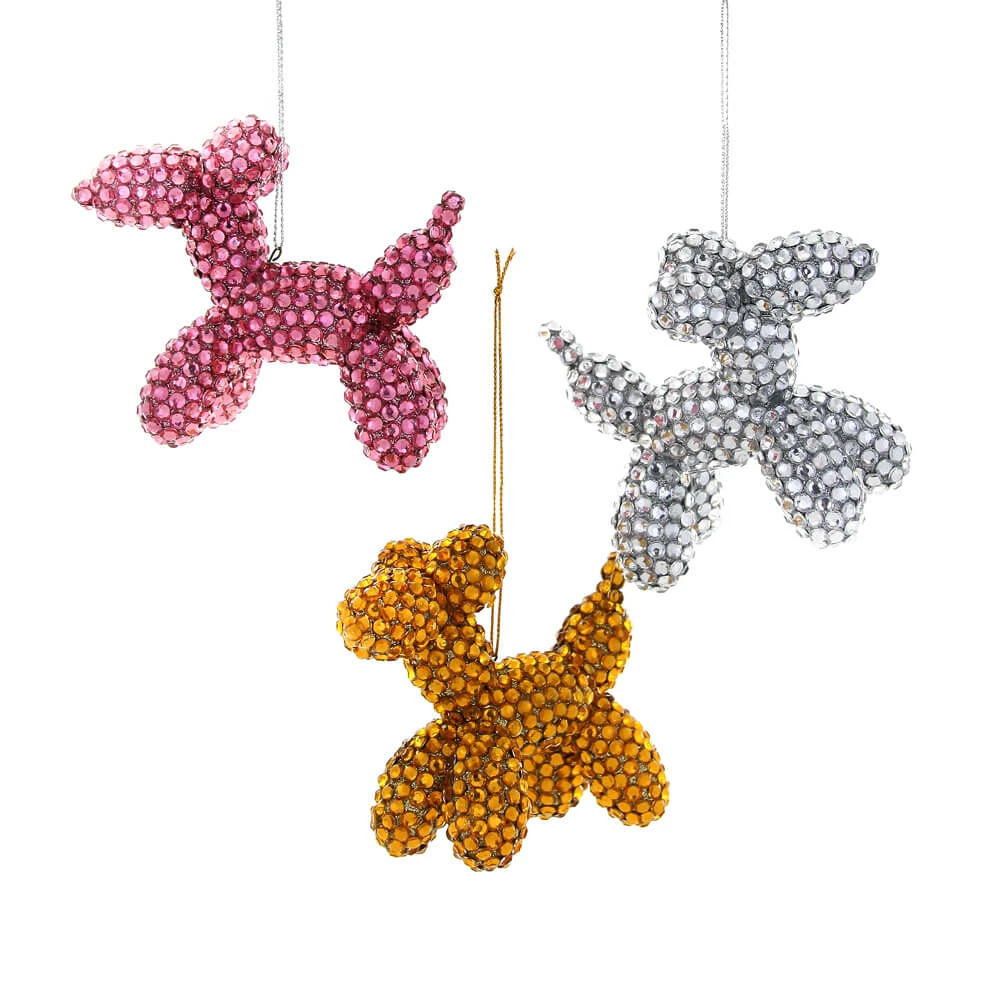 Jeweled Balloon Pup Ornament, Resin, 4.25″