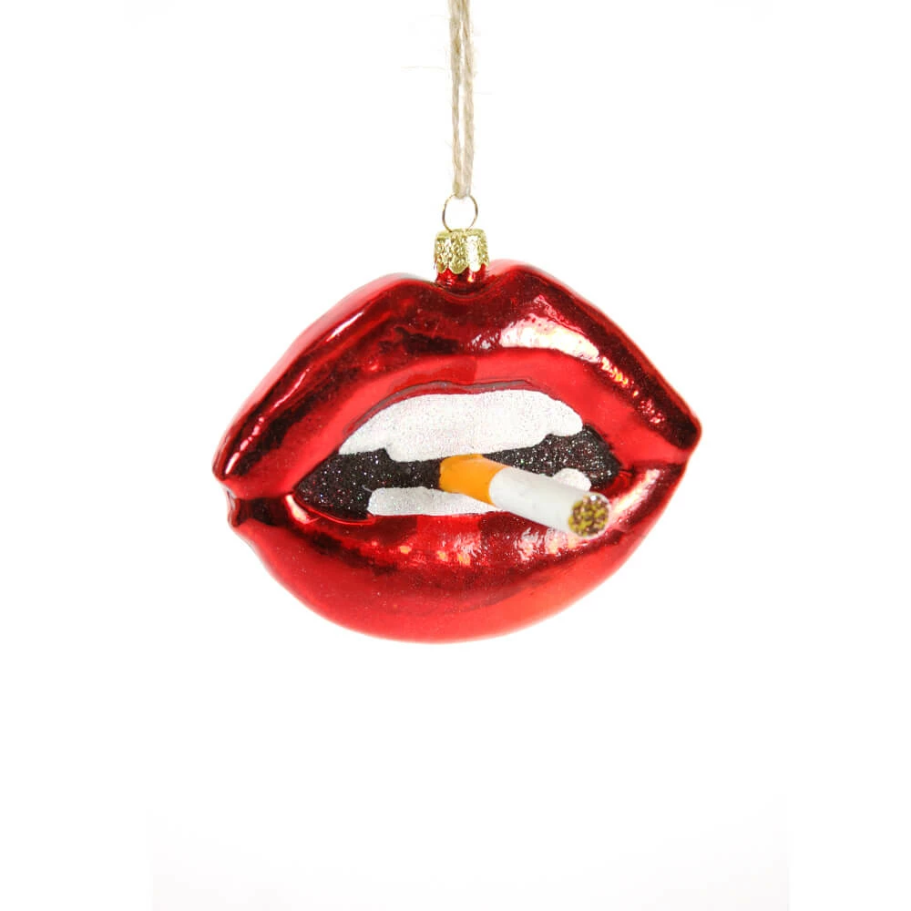 Lips with Cig Ornament, Glass, 4″