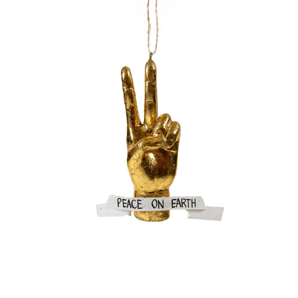 Peace On Earth Gold Hand Ornament, Resin, 4.25″