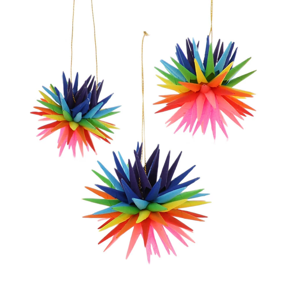 Rainbow Paper Starburst Ornaments (Set of 3)Â 2.5-3.5″
