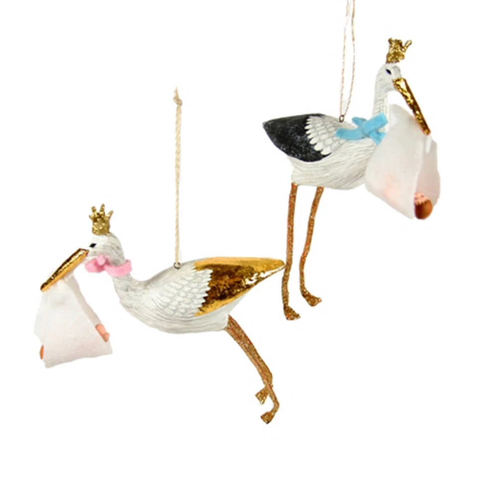 Special Delivery StorkĀ Ornament, Gold Leafed Papermache, 6.75″