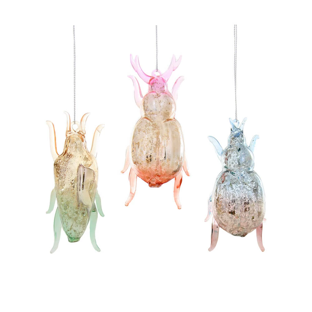 Pastel Beetle Ornament 4″. Available in 3 assorted colors: green, pink, blue