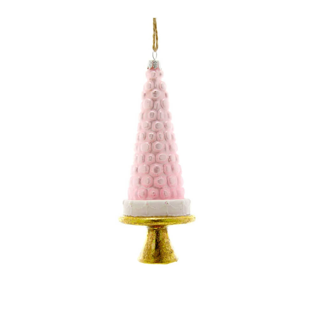 Pink Macaron Tower Ornament. Hand-painted blown glass ornament with gold-leafed detailing and lots of glitter! Approximately 5.25″