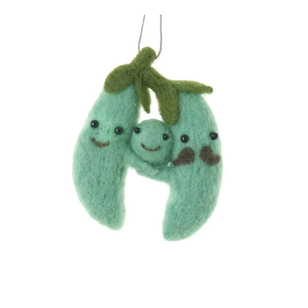 Felt Pea Pod Family Ornament, Glass, 3.5″