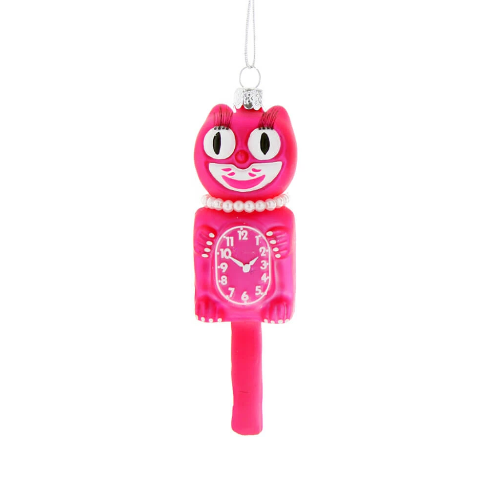 PinkĀ Retro Cat Clock Ornament, Glass, 5″