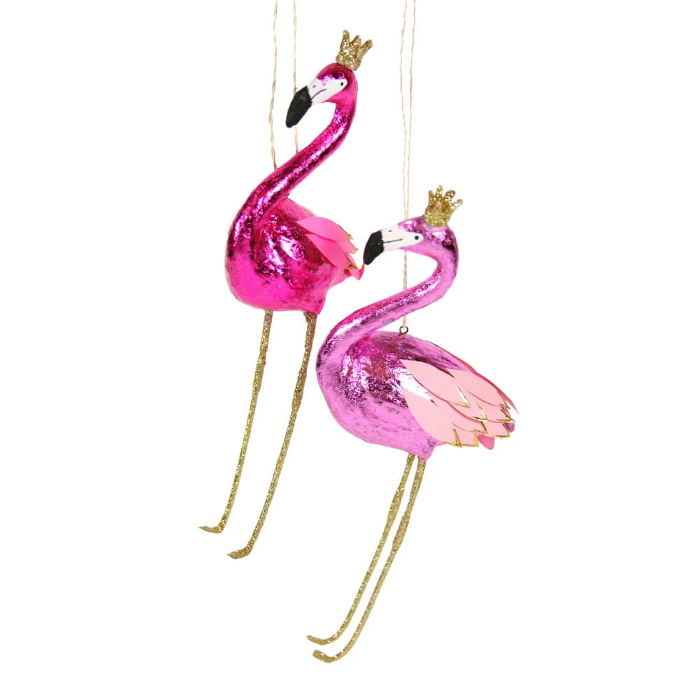 Shiny Crowned Pink Flamingo Ornament. 8.75″ Available in two colors (from left to right): Magenta Flamingo, Pink Flamingo. Each sold separately.Â