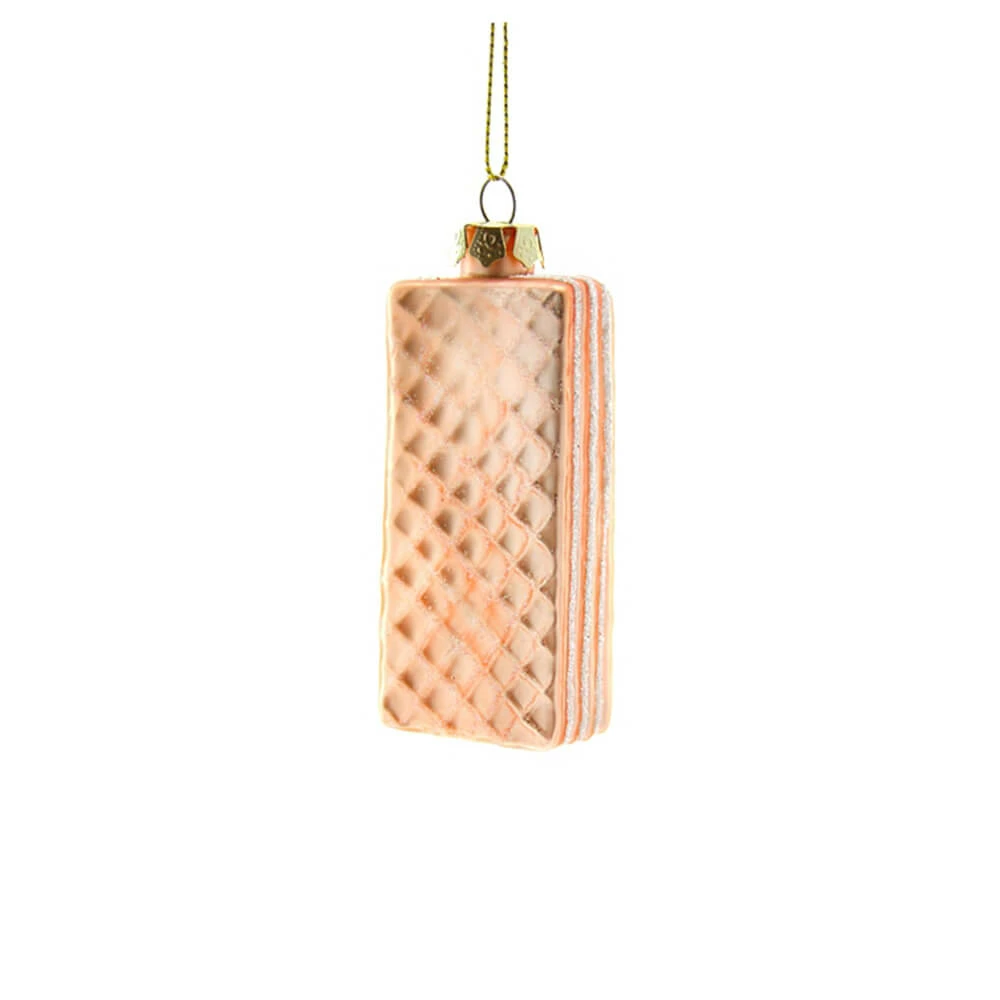 Vanilla Wafer Ornament. Hand-painted blown glass with glitter detailing. 3.5″