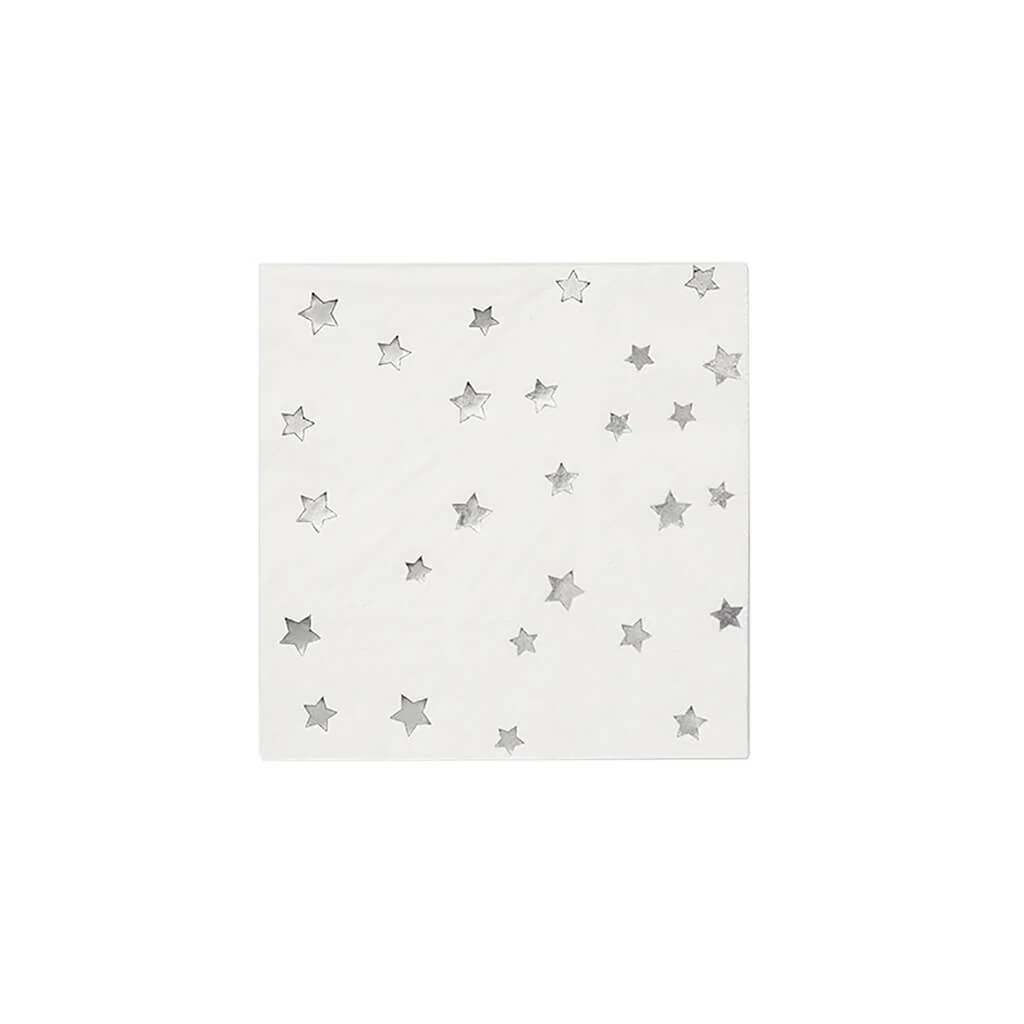 Paper cocktail napkins for your Fourth of July spectacular, an outer space adventure or white Christmas! Silver foil stars.