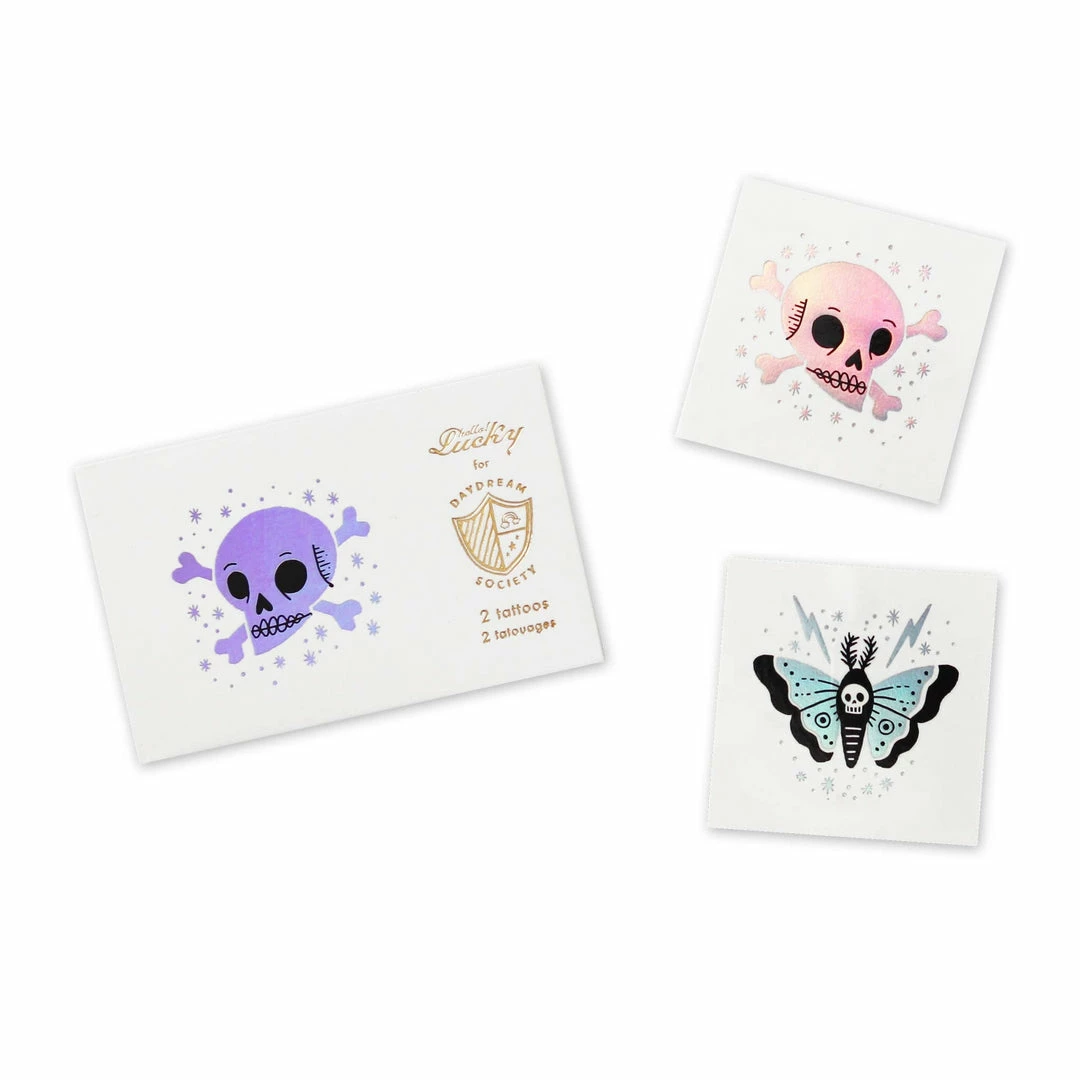 Fabulously frightening! Featuring holographic silver foil, these Halloween tattoos are to die for!