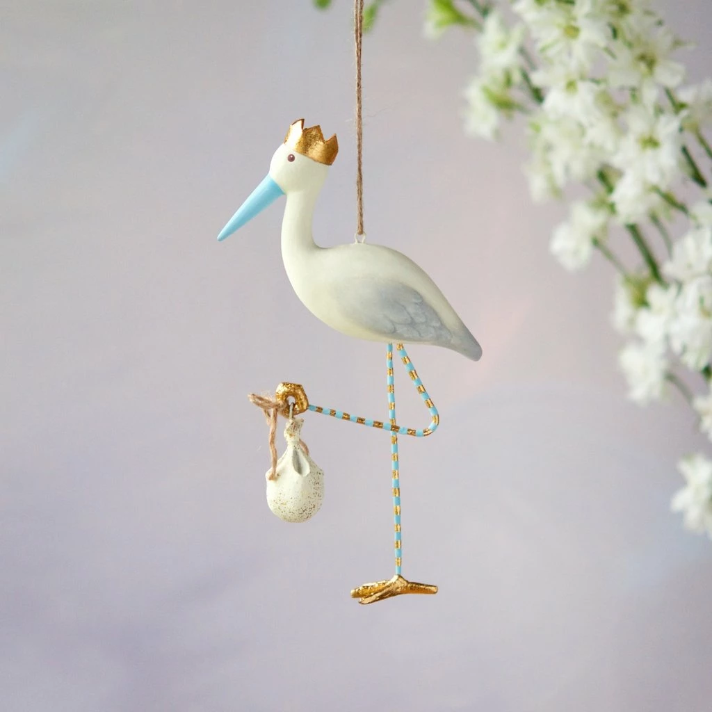 Glitterville Studios Blue Royal Stork Ornament / Baby’s First Christmas Ornament