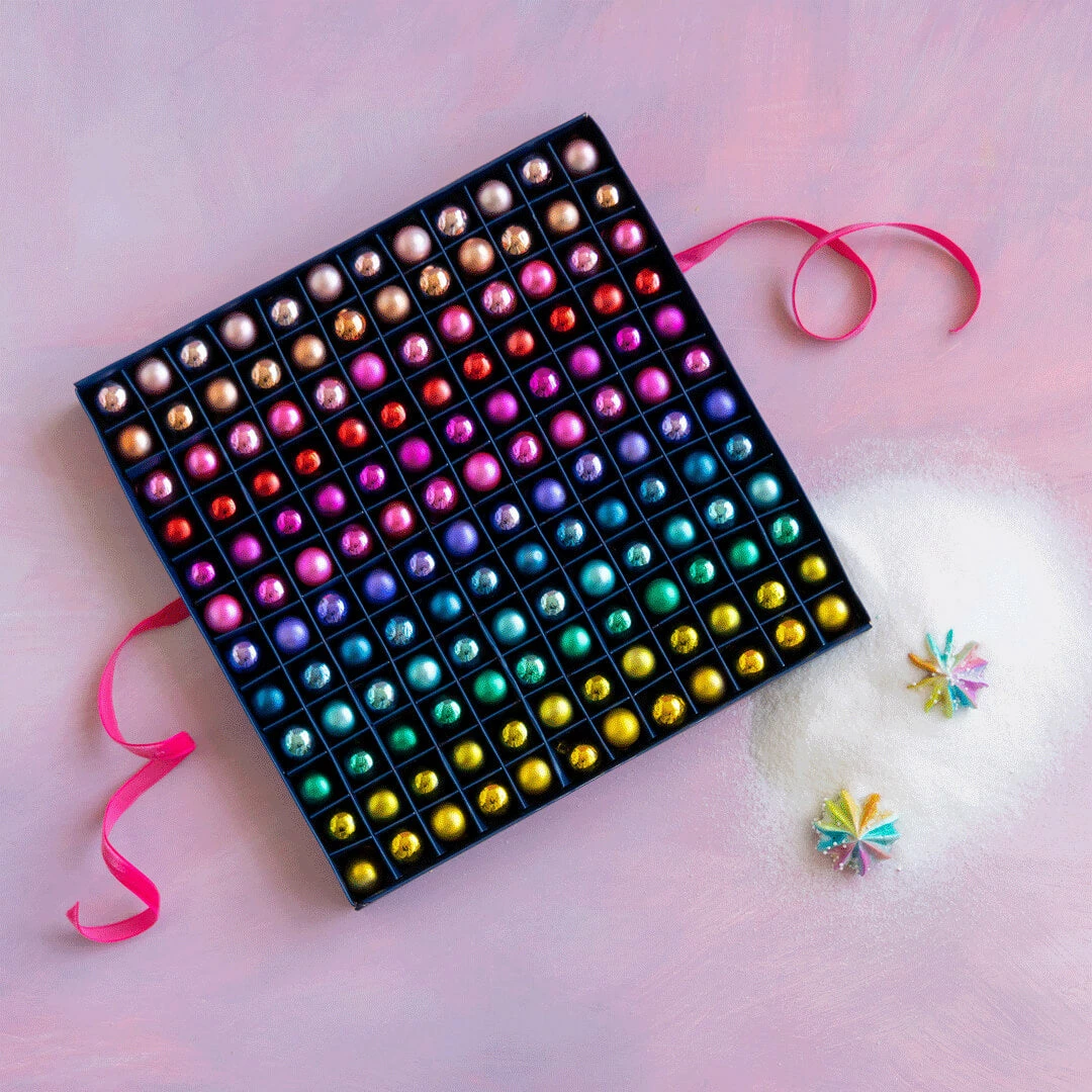 The possibilities are endless! A gorgeous rainbow of 144 Mini Glass Ornaments to adorn whatever you’d like, as you like!Â