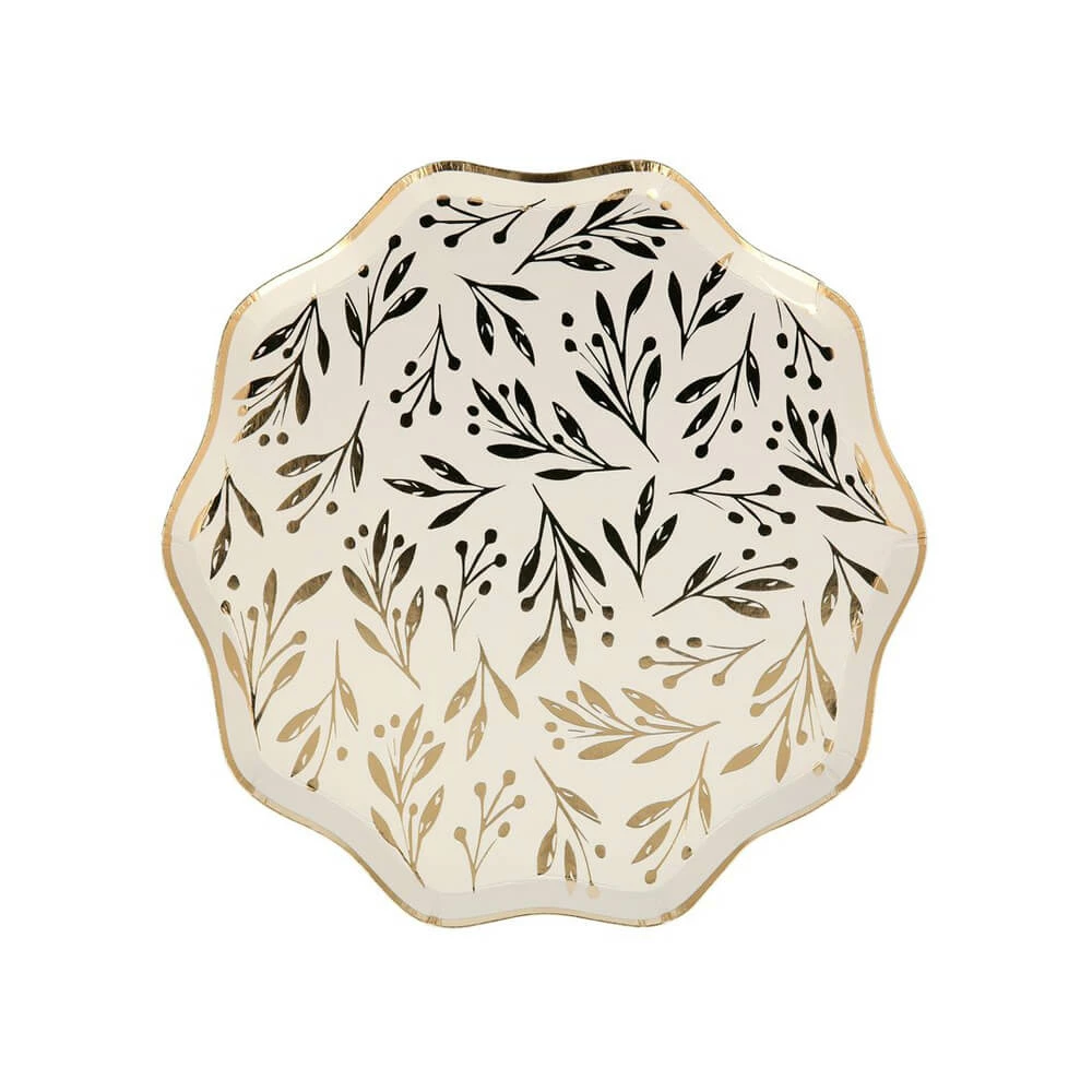 Leaves and berries are a fabulous festive party theme, and look even more amazing when the design is in a shiny gold foil. These side plates, perfect to fill with Christmas treats, have a delightful wavy gold border too.