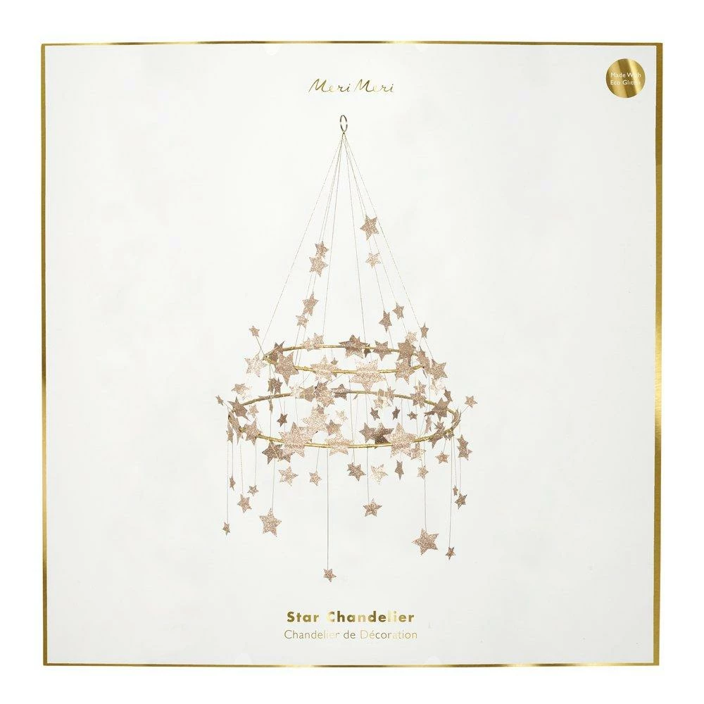 This gorgeous chandelier is a stunning way to add a touch of style to any room. It’s beautifully crafted with lots of glittering gold stars with gold wire and thread. Perfect for the holidays, or any time of the year where you want a decoration that is the star attraction!