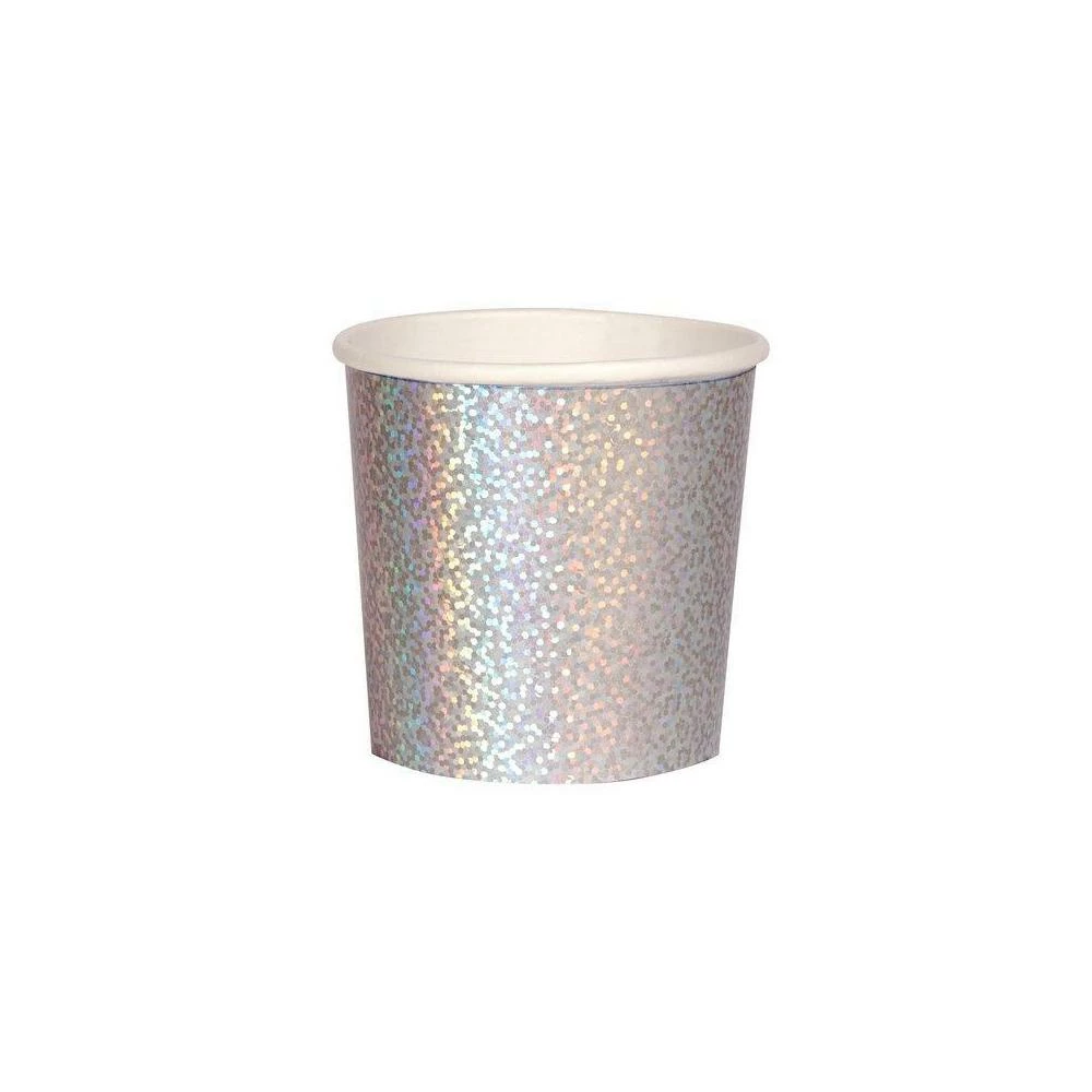 Small drinks served in these sparkly silver tumbler cups are a stylish way to refresh your guests. Made from high-quality card with a superb gloss finish, suitable for hot or cold drinks.