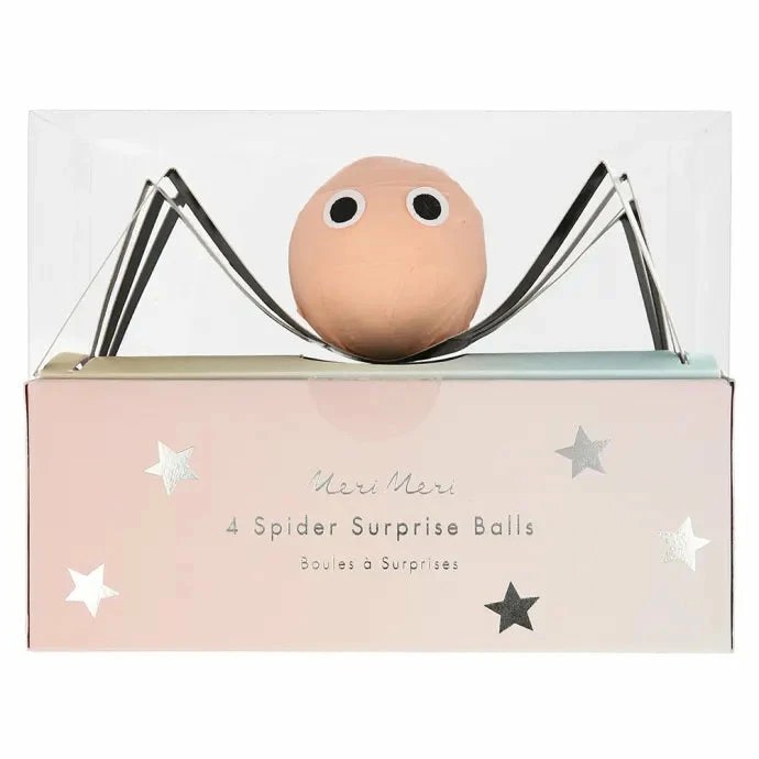 - Includes 4 crepe paper spider surprise balls with silver-foil paper legs and sticker eyes