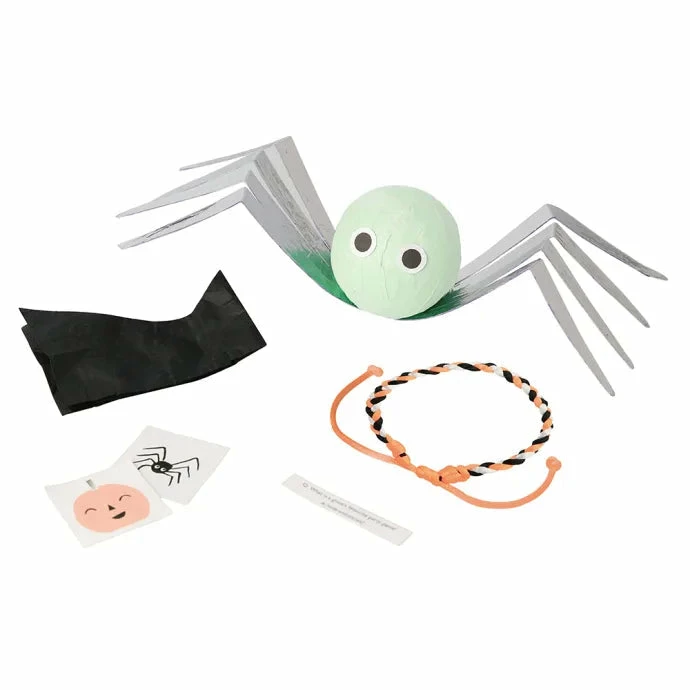 These pastel spider surprise balls will not only look fantastic on your Halloween party table, they’ll also be a fun treat for guests. Simply unwrap layers of crepe paper to reveal hidden surprises! Each surprise ball spider includes a Halloween friendship bracelet, 2 temporary tattoos, a joke and a tissue paper hat.Â