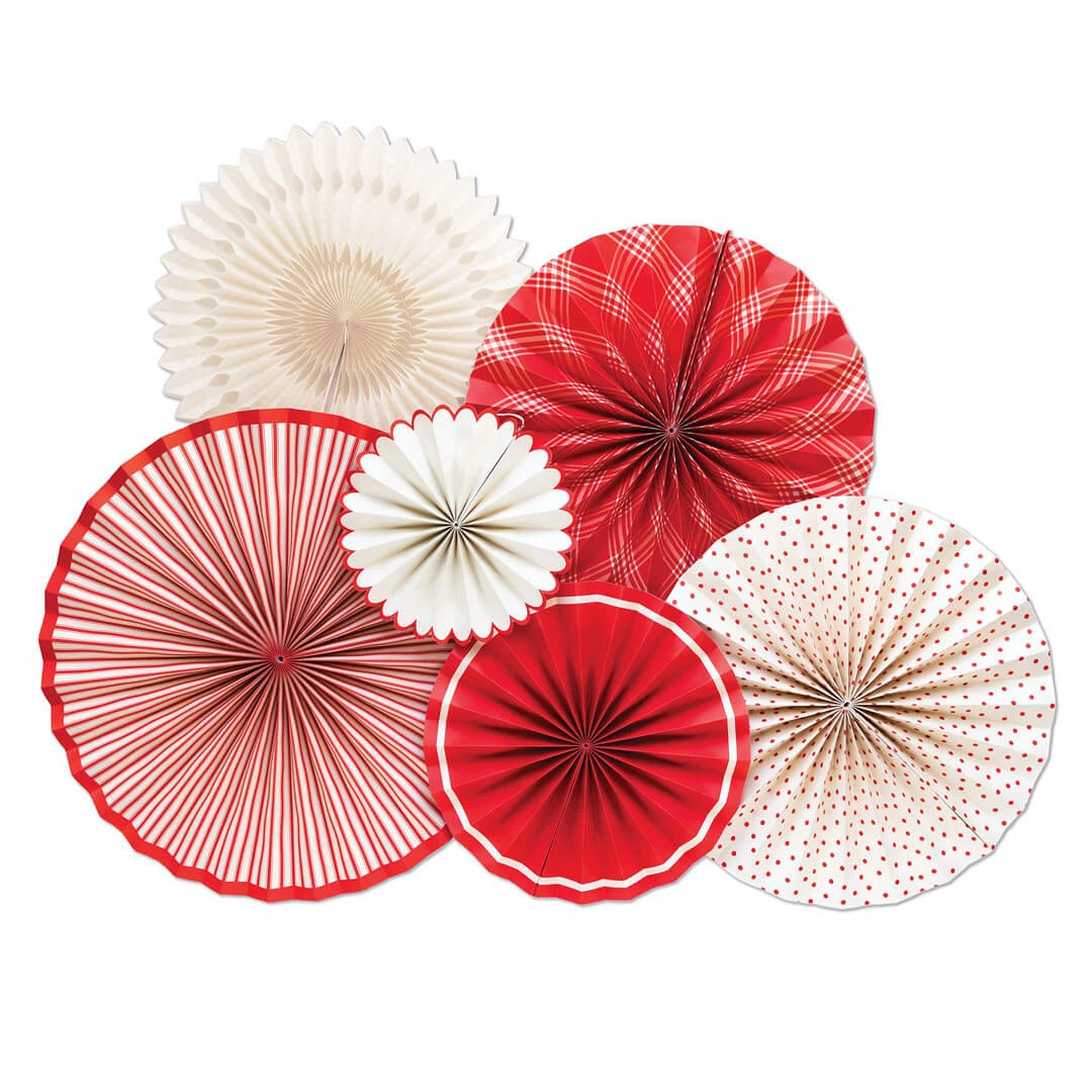 This red and cream fan set is perfect for a cheerful backdrop to your holiday gatherings. Included in this set is 6 fans that can make decorating cozy mantle in a snap making it the favorite gathering spot this holiday season. Or hang these bright party fans above your table, they are double-sided, so your guests will always catch their best side!