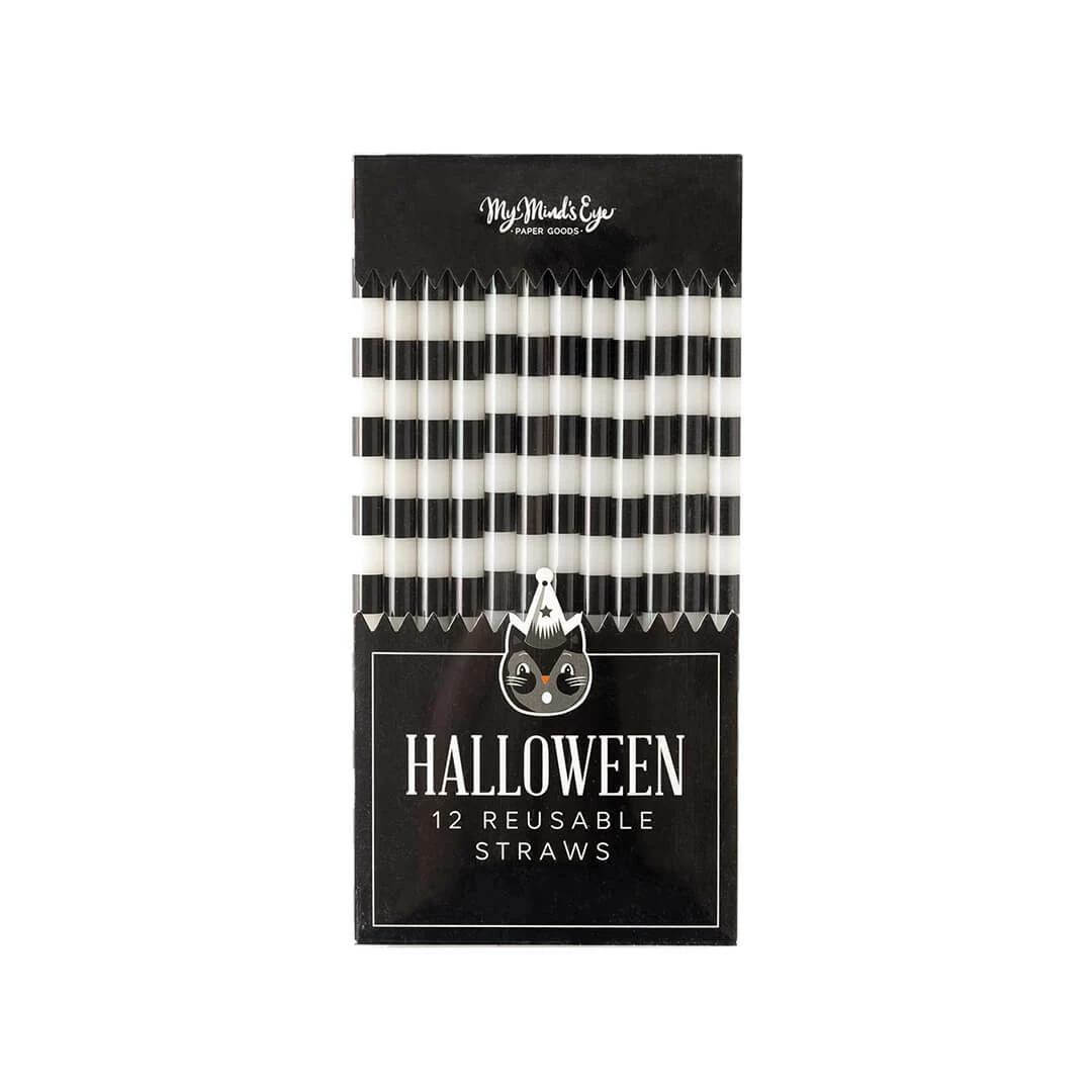 Dress up spooky drinks with these frightfully delightful reusable straws! Made from thick plastic, these straws are reusable so you can feel great about including these straws in your tablescape at your celebration. The black stripe pattern is a perfect neutral to add to your upcoming Halloween celebration or how about an Over the Hill party or just for fun.