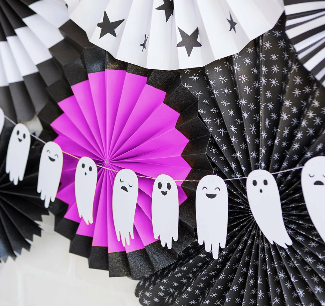 Boo! This whimsical little ghost banner is a great addition to your Halloween decor. Four different ghosts with fun, not-so-scary expressions–the perfect amount of spooky for any Halloween party.
