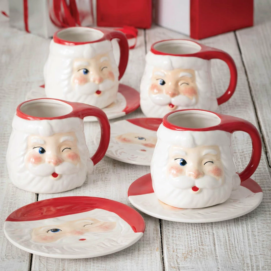 These red and white dolomite Santa mugs are stylish and fun. The perfect playful pieces to add to your collection of whimsical Christmas decor and the ultimate tableware for holiday hosting!